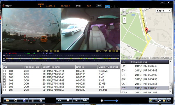 Особенное преимущество регистратора — GPS-датчик, который фиксирует скорость автомобиля, маршрут и координаты. Вся эта информация может сыграть решающую роль при выяснении обстоятельств ДТП. Маршрут машины можно изучить при подключении прибора к компьютеру через USB.