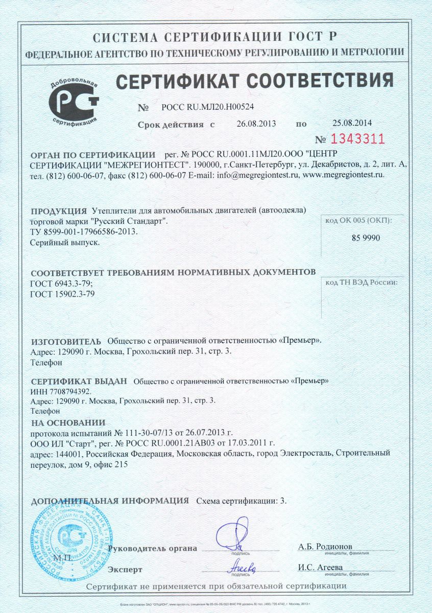 А для дизельных двигателей авто одеяло «Русский стандарт» —