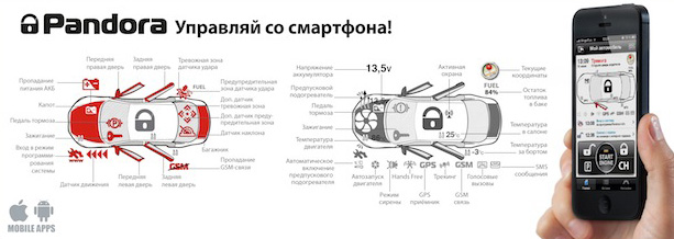 Если у вас телефон на базе iOS или Android, то управлять сигнализацией Pandora вам будет намного удобнее с помощью мобильного приложения Pandora Info. Скачать его можно здесь: