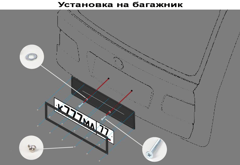 • Бронированная система состоит из 3 частей: подложки, средней рамы и внешней укрепляющей рамки. Такая конструкция надежно держит табличку с номером, не позволяя злоумышленнику подобраться к его краям.
