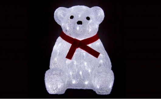 Световая фигура сделана в виде симпатичного мишки. с красным шарфиком. А 60 ярких светодиодов белого цвета делают обычного игрушечного медведя просто волшебным! Световой мишка оригинально украсит ваш дом! Если вы его поставите его на полочку на видном месте, то внимание ваших гостей просто обеспечено!