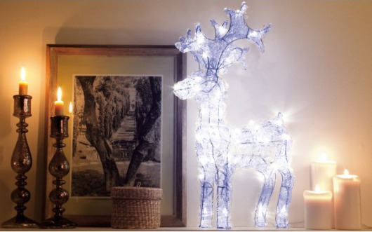 Световая фигура выполнена в виде красивого оленя с санями. Размер оленя - 35x50x12 см, поэтому вы можете его поставить куда угодно: на праздничный стол, на полочку или под новогоднюю елочку. Заметьте - это не просто светодиодная гирлянда, а настоящее произведение искусства! 60 ярких светодиодов теплого белого цвета делают данную фигуру очень эффектной и ее трудно не заметить.