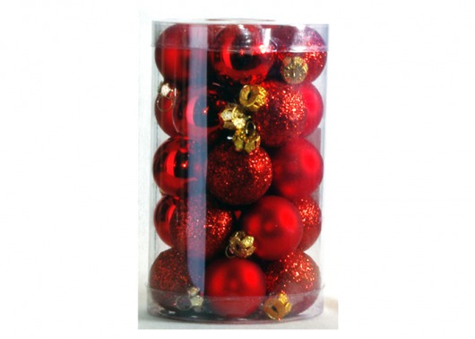В набор PeneriGifts входят 25 стеклянных шаров диаметром 3 см. Этого более чем достаточно, чтобы целиком нарядить любую домашнюю ель. Даже не обязательно добавлять мишуру — любая елка и без нее будет выглядеть элегантно и самодостаточно. Сочетание матовых, глянцевых и переливающихся красных шариков с блестками смотрится добротно, нарядно и гармонично.