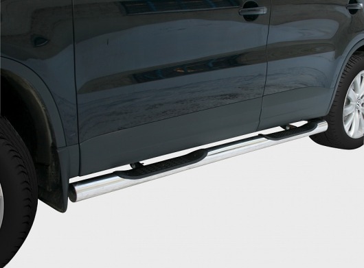 Боковые пороги-подножки сделаны специально для автомобилей Volkswagen Tiguan Track&Field и Tiguan Track&Style от 2011 г.в., поэтому устанавливаются достаточно просто и без повреждений корпуса. Помимо этого, стальные пороги с проступями для Фольксваген Тигуан смотрятся очень стильно и эффектно. Они добавят вашему авто еще больше солидности и внушительности.