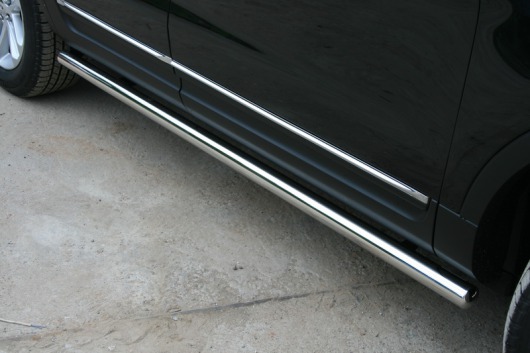 Пороги на Ford Explorer – это боковые подножки из нержавеющей стали диаметром 60 мм, которые позволяют более комфортно входить и выходить из салона автомобиля. Подножки Ford Explorer очень прочные, надежные и долговечные: они не боятся коррозии, сколов и царапин и выдерживают большие нагрузки.