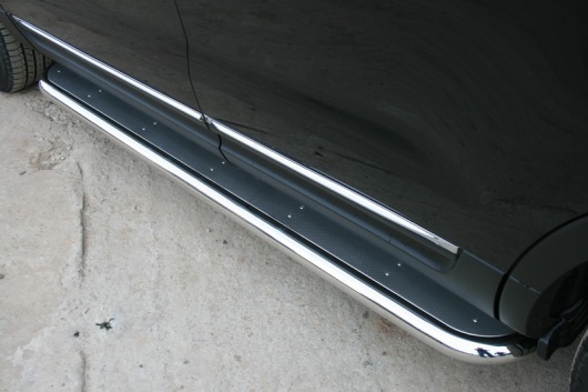 Пороги на Ford Explorer – это боковые подножки из нержавеющей стали диаметром 60 мм, которые позволяют более комфортно входить и выходить из салона автомобиля. Подножки Ford Explorer очень прочные, надежные и долговечные: они не боятся коррозии, сколов и царапин и выдерживают большие нагрузки.