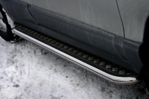 Боковые пороги-подножки сделаны специально для автомобилей Hyundai Tucson от 2004 г.в., поэтому устанавливаются достаточно просто и без повреждений корпуса. Помимо этого, стальные пороги с листом для Хендай Туксон смотрятся очень стильно и эффектно. Они добавят вашему авто еще больше солидности и внушительности.