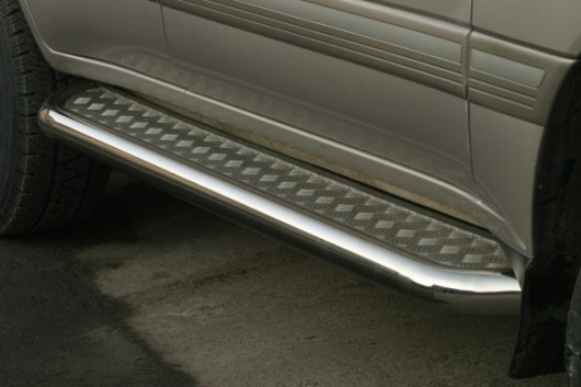 Пороги на Toyota Land Cruiser 100 – это боковые подножки из нержавеющей стали диаметром 76 мм, которые позволяют более комфортно входить и выходить из салона автомобиля. Подножки Toyota Land Cruiser 100 очень прочные, надежные и долговечные: они не боятся коррозии, сколов и царапин и выдерживают большие нагрузки.