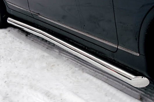 Пороги на Infiniti EX 35 – это боковые подножки из нержавеющей стали диаметром 76 мм, которые позволяют более комфортно входить и выходить из салона автомобиля. Подножки Infiniti EX 35 очень прочные, надежные и долговечные: они не боятся коррозии, сколов и царапин и выдерживают большие нагрузки.