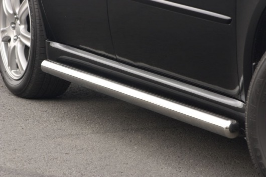 Боковые пороги-подножки сделаны специально для автомобилей Subaru Legacy Outback, поэтому устанавливаются достаточно просто и без повреждений корпуса. Помимо этого, стальные пороги-трубы для Субару Легаси Аутбек смотрятся очень стильно и эффектно. Они добавят вашему авто еще больше солидности и внушительности.