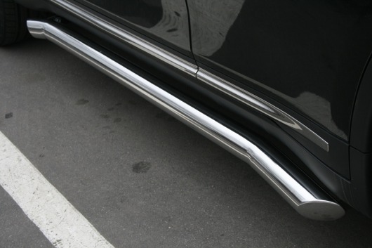 Пороги на Infiniti FX 35, FX 50 – это боковые подножки из нержавеющей стали диаметром 76 мм, которые позволяют более комфортно входить и выходить из салона автомобиля. Подножки Infiniti FX 35 и FX 50 очень прочные, надежные и долговечные: они не боятся коррозии, сколов и царапин и выдерживают большие нагрузки.