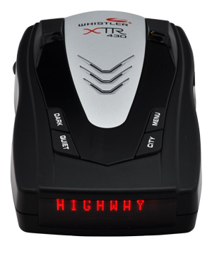 При помощи кнопки "Menu" можно отрегулировать яркость дисплея или изменить параметры Whistler XTR 430. Навигация по меню осуществляется боковыми прорезиненными кнопками. Аппарат выдает как звуковые, так и визуальные сигналы при обнаружении радиосигнала от полицейских устройств. Помимо привычных диапазонов "Х" и "К", устройство улавливает сигналы лазерных радаров, а так же радаров, работающих в короткоимпульсном режиме POP ("К" и "Ка" диапазоны) и Instant-On ("X" диапазон). Все сигналы улавливаются в радиусе 360 градусов.