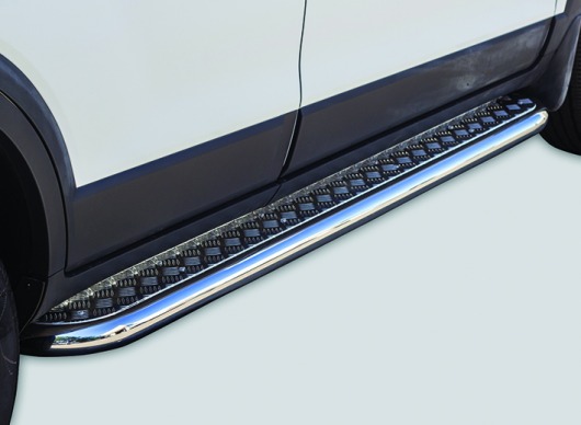 Пороги на Chevrolet Captiva – это боковые подножки из нержавеющей стали диаметром 60 мм, которые позволяют более комфортно входить и выходить из салона автомобиля. Подножки Chevrolet Captiva очень прочные, надежные и долговечные: они не боятся коррозии, сколов и царапин и выдерживают большие нагрузки.