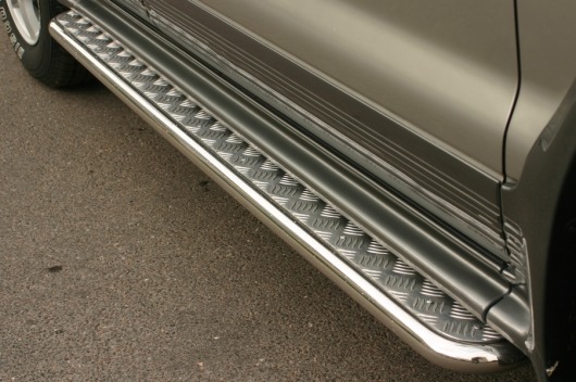 Пороги на Kia Sportage – это боковые подножки из нержавеющей стали диаметром 42 мм, которые позволяют более комфортно входить и выходить из салона автомобиля. Подножки Kia Sportage очень прочные, надежные и долговечные: они не боятся коррозии, сколов и царапин и выдерживают большие нагрузки.