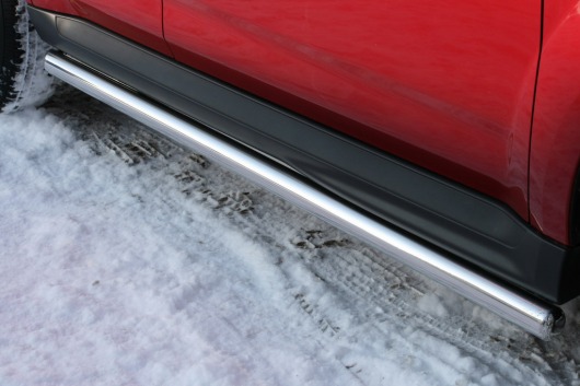 Пороги на Mitsubishi Outlander XL – это боковые подножки из нержавеющей стали диаметром 76 мм, которые позволяют более комфортно входить и выходить из салона автомобиля. Подножки Mitsubishi Outlander XL очень прочные, надежные и долговечные: они не боятся коррозии, сколов и царапин и выдерживают большие нагрузки.