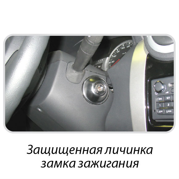 защита корпуса замка зажигания: металлический кожух монтируется поверх штатного замка зажигания. Благодаря этому замок защищается от ударных нагрузок и механического воздействия.