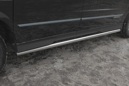 Пороги на SsangYong Actyon Sport – это боковые подножки из нержавеющей стали диаметром 60 мм, которые позволяют более комфортно входить и выходить из салона автомобиля. Подножки SsangYong Actyon Sport очень прочные, надежные и долговечные: они не боятся коррозии, сколов и царапин и выдерживают большие нагрузки.