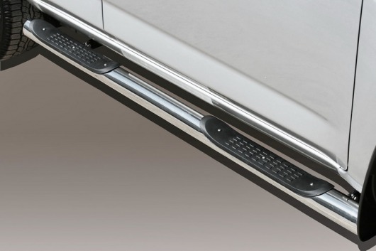 Боковые пороги-подножки сделаны специально для автомобилей Toyota RAV4 SWB, поэтому устанавливаются достаточно просто и без повреждений корпуса. Помимо этого, стальные пороги для Тойота РАВ4 SWB смотрятся очень стильно и эффектно. Они добавят вашему авто еще больше солидности и внушительности.