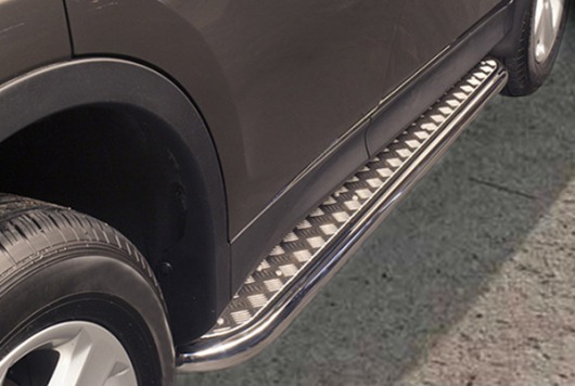 Боковые пороги-подножки сделаны специально для автомобилей Toyota RAV4 2012 г.в., поэтому устанавливаются достаточно просто и без повреждений корпуса. Помимо этого, стальные пороги с листом для Тойота РАВ4 смотрятся очень стильно и эффектно. Они добавят вашему авто еще больше солидности и внушительности.