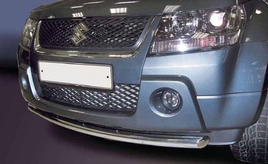 Защита переднего бампера труба предназначена для автомобилей Suzuki Grand Vitara 2006-2008 г.в. Вам не придется подгонять защиту под размеры бампера вашего авто. И с монтажом проблем не возникнет: установка защиты переднего бампера производится в штатные отверстия, а значит, необходимость сверлить кузов отпадает.