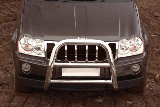 Передняя решетка Jeep Grand Cherokee (кенгурятник) – это защитная дуга на бампер из нержавеющей стали диаметром 76 мм.