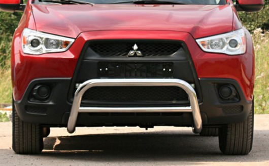 Передняя решетка Mitsubishi ASX (кенгурятник) – это защитная дуга на бампер из нержавеющей стали диаметром 60 мм.