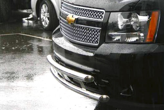 Защита переднего бампера для Chevrolet Tahoe – это двойная труба на бампер из нержавеющей стали диаметром 60/60 мм.