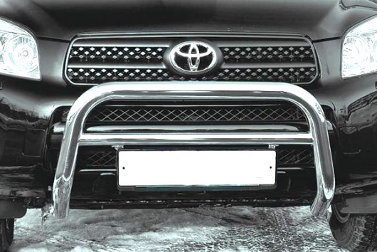 Передняя решетка Toyota RAV4 (кенгурятник) – это защитная дуга на бампер из нержавеющей стали диаметром 60 мм.