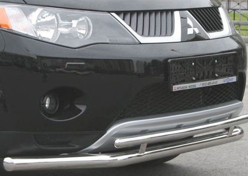 Защита переднего бампера для Mitsubishi Outlander XL – это двойная труба на бампер из нержавеющей стали диаметром 60/42 мм.