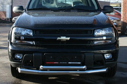 Защита переднего бампера для Chevrolet Trail Blazer – это двойная труба на бампер из нержавеющей стали диаметром 76/60 мм.