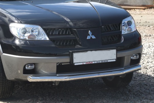 Труба на бампер Mitsubishi Outlander защищает передний бампер автомобиля от различных механических повреждений при мелких ДТП и неудачных парковках, а также незаменима при езде по бездорожью. А кроме этого, труба на передний бампер Митсубиси Outlander смотрится очень стильно и эффектно.