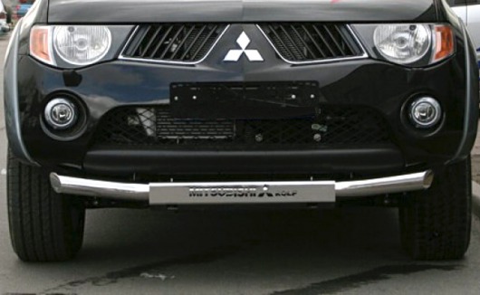Защита переднего бампера для Mitsubishi L200 – это труба на бампер из нержавеющей стали диаметром 76 мм.
