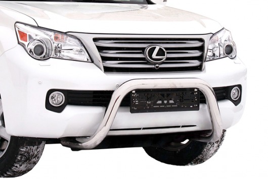 Передняя решетка Lexus GX460 (кенгурятник) – это защитная дуга на бампер из нержавеющей стали диаметром 76 мм.