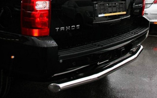 Труба на задний бампер Chevrolet Tahoe защищает задний бампер автомобиля от различных механических повреждений при столкновениях на дороге и неудачных парковках. А кроме этого, защита заднего бампера для Шевроле Таха — это дополнительная деталь тюнинга.