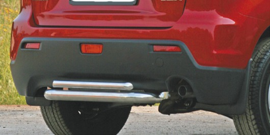 Защита заднего бампера для Mitsubishi ASX – это двойная труба на бампер из нержавеющей стали диаметром 60/42 мм.