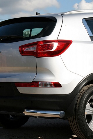Защита заднего бампера для Kia Sportage – это защитные уголки на бампер из нержавеющей стали диаметром 42 мм.