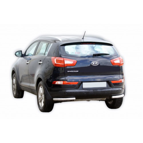 Защита заднего бампера уголки предназначена для автомобилей Kia Sportage от 2008 г.в. Вам не придется подгонять защиту под размеры бампера вашего авто. И с монтажом проблем не возникнет: установка защиты заднего бампера производится в штатные отверстия, а значит, необходимость сверлить кузов отпадает.