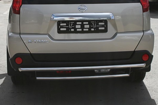 Защита заднего бампера для Nissan X-Trail – это двойная труба на бампер из нержавеющей стали диаметром 42/42 мм.