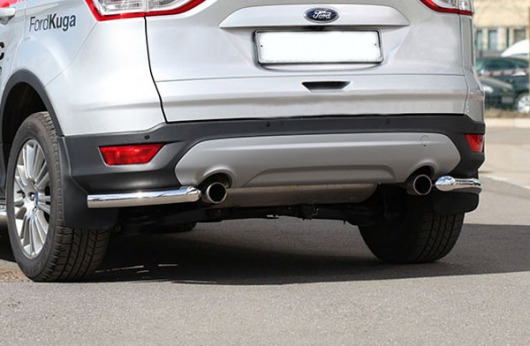 Уголки на задний бампер Ford Kuga защищают задний бампер автомобиля от различных механических повреждений при столкновениях на дороге и неудачных парковках. А кроме этого, защита заднего бампера для Форд Куга — это дополнительная деталь тюнинга.