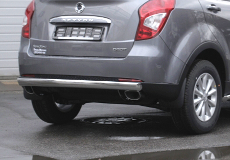 Защита заднего бампера труба предназначена для автомобилей Ssang Yong Actyon от 2013 г.в. Вам не придется подгонять защиту под размеры бампера вашего авто. И с монтажом проблем не возникнет: установка защиты заднего бампера производится в штатные отверстия, а значит, необходимость сверлить кузов отпадает.