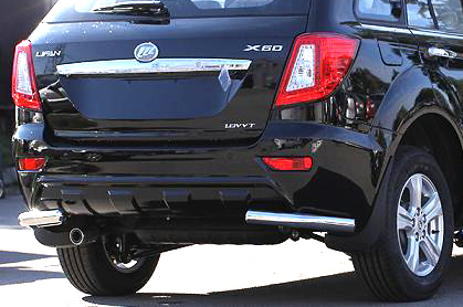 Защита заднего бампера для Lifan X60 – это защитные уголки на бампер из нержавеющей стали диаметром 42 мм.