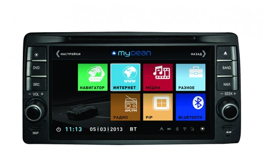 Штатная голова сделана на базе двухъядерного процессора частотой 1 Ггц семейства ARM Cortex с очень высокой производительностью. На ШГУ MyDean 3212 устанавливается операционная система WinCE 6.0 с полностью русифицированным меню. Сенсорный дисплей диагональю 7", с разрешением 800х480 и высокой контрастностью позволяет отлично просматривать фото и видео всех основных форматов, включая видео высокой чёткости HD. Также Вы можете просматривать эфирное телевидение, для этого в штатную голову встроен аналоговый ТВ-тюнер.