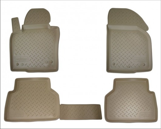 Полиуретановые коврики для автомобиля гладкие, приятные и не пропускают влагу. Бежевый цвет универсален и подойдет любому авто. В комплекте вы получите 4 коврика в салон автомобиля.