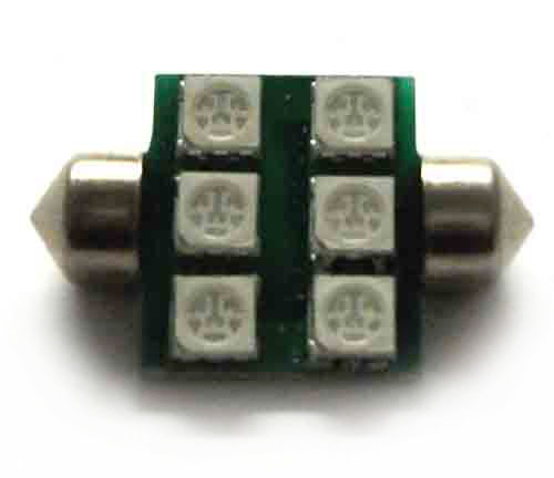 Автомобильная светодиодная лампа 31-41 6SMD используется для освещения салона или подсветки номера и отличается большим выбором цвета свечения.