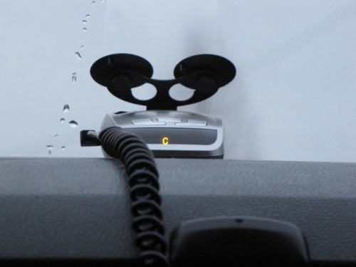 Работает Crunch 2140S от бортовой сети автомобиля через шнур, который подключается к прикуривателю. Для крепления используется специальный кронштейн на присосках (крепление на стекло) или липучки (крепление на приборную панель), которые входят в комплект.