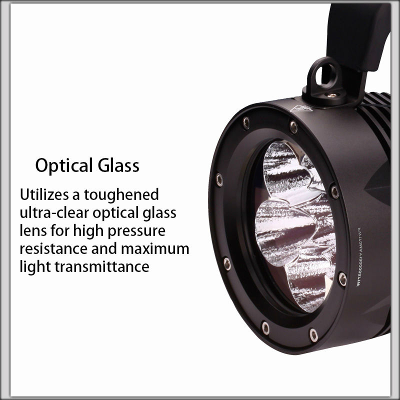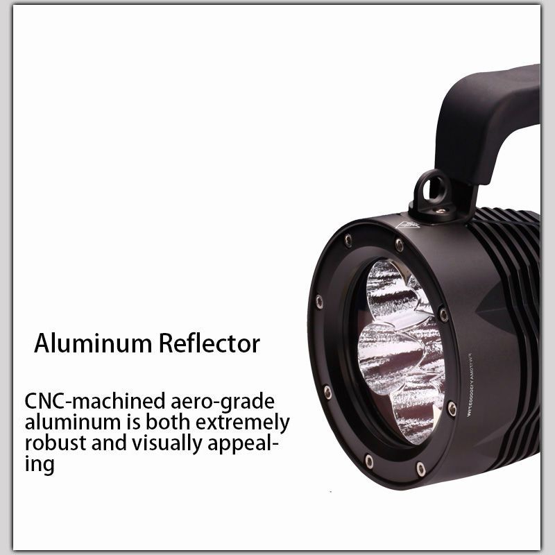 • Мощные светодиоды обеспечивают яркость светового луча в 5600 лм. Это значит, что луч будет освещать всё, что вам нужно, даже на огромном расстоянии. Используется холодный свет диода, а значит, удастся добиться идеальных результатов в прозрачной воде.