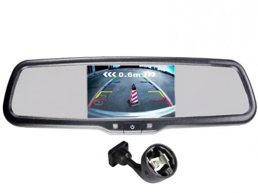 Зеркало с монитором снабжено большим экраном размером в 5 дюймов, который автоматически включается, если вы даёте задний ход. Если подключить к зеркалу с монитором камеру заднего вида, вы увидите на экране всё, что она снимает. Для установки устройства нужно полностью снять заводское зеркало.