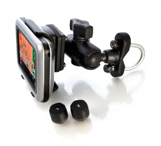Датчики накручиваются на колесные вентили. После установки элементов питания, датчик начинает измерять давление и температуру. Полученные данные передаются на большой ЖК-дисплей, который вы можете установить в любом удобном месте в мотоцикле, и сразу же отображаются на экране. Дисплей комфортно отображает нужные данные. Если показатели выходят за пределы, которые вы устнавливаете, система предупреждает при помощи подсветки дисплея и звукового сигнала.