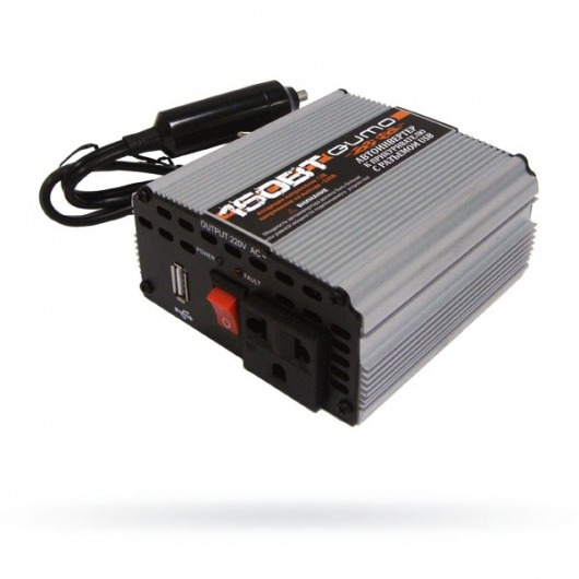 Автомобильный преобразователь напряжения (инвертор) QUMO 12-220В 150Вт преобразует 12В постоянного тока в 220В переменного. Инвертор напряжения имеет мощность в 150Вт. Вы получаете в автомобиле обычную домашнюю розетку на 220В, просто подключив устройство к клеммам аккумулятора. Кроме того, в автомобильном инверторе QUMO 12-220 150Вт имеется выход USB  для работы и зарядки портативных устройств.