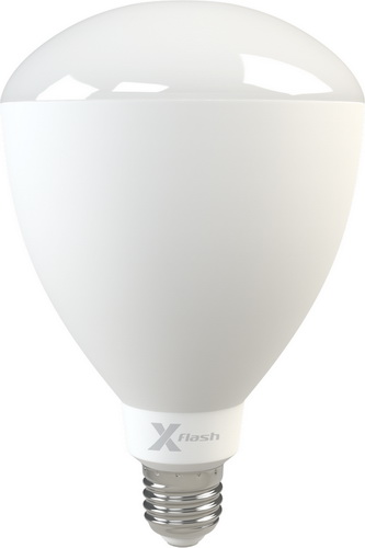 Светодиодная лампа X-Flash Fungus Е40 - это led-лампа общего освещения, полный аналог люминесцентных ламп и ламп накаливания, с колбой формы «рефлектор». Корпус выполнен из теплорассеивающей пластмассы.  Использование светодиодов с высокой светоотдачей (от 80 лм/Вт) дает высокие значения светового потока. Угол освещения составляет 180°, индекс цветопередачи (CRI) обеспечивается на уровне 80-85.корпус лампы выполнен из теплорассеивающей пластмассы. Данная модель рассчитана на напряжение 220 В. Мощность диодной лампы X-Flash — 50Вт., яркость — 4800 Лм, угол освещения более 180°, а температура свечения – 4000 K (это белый свет).